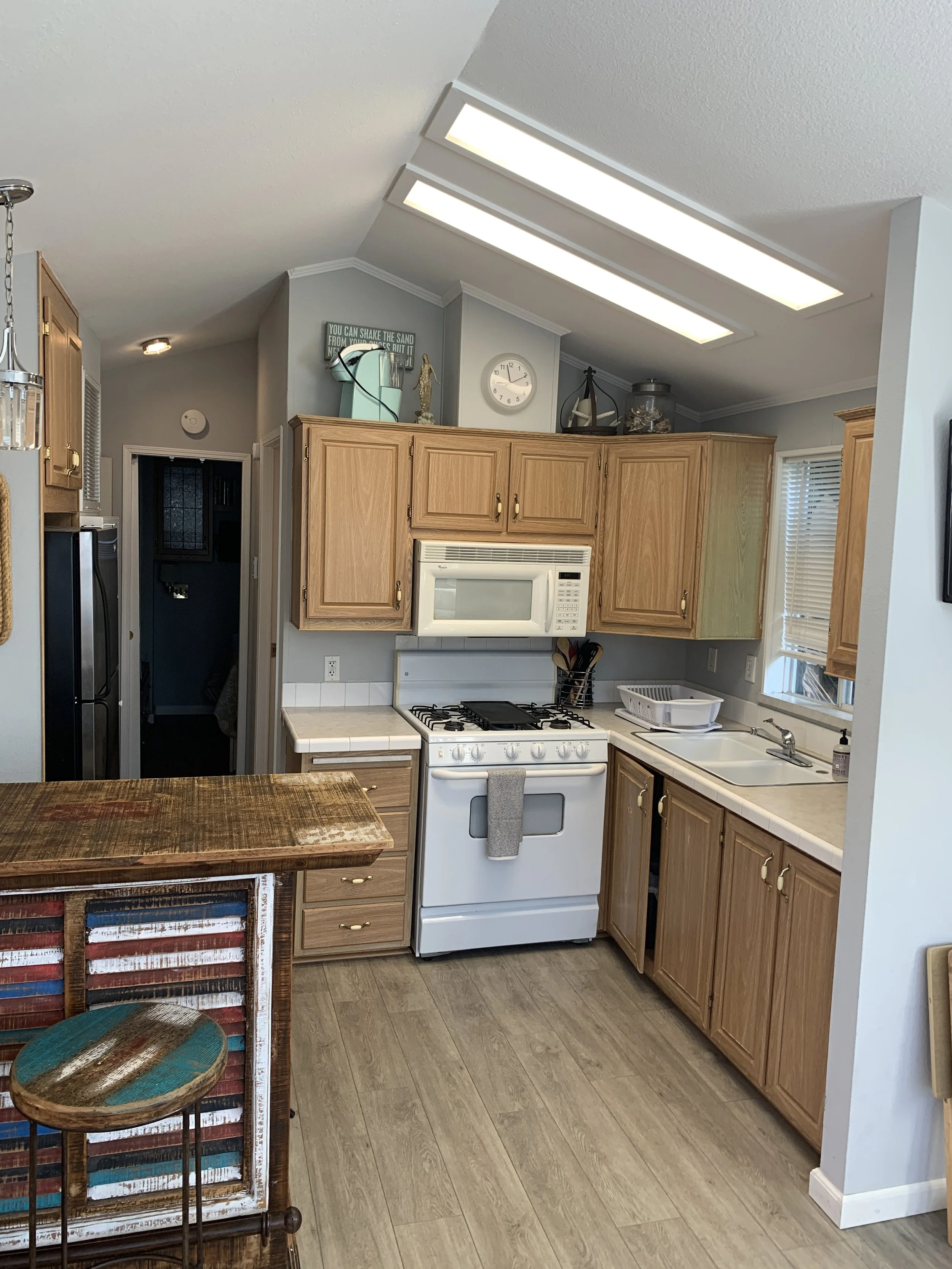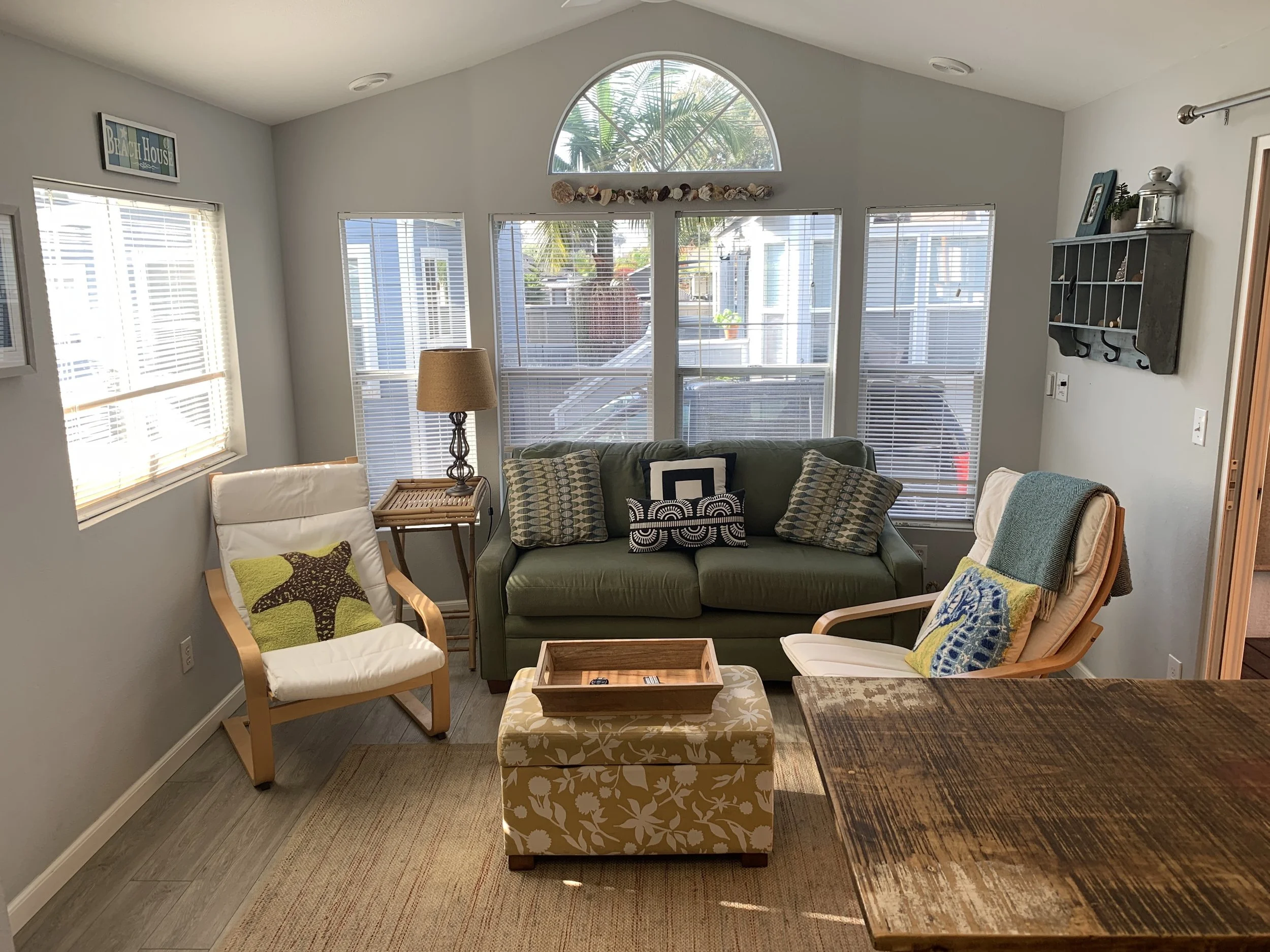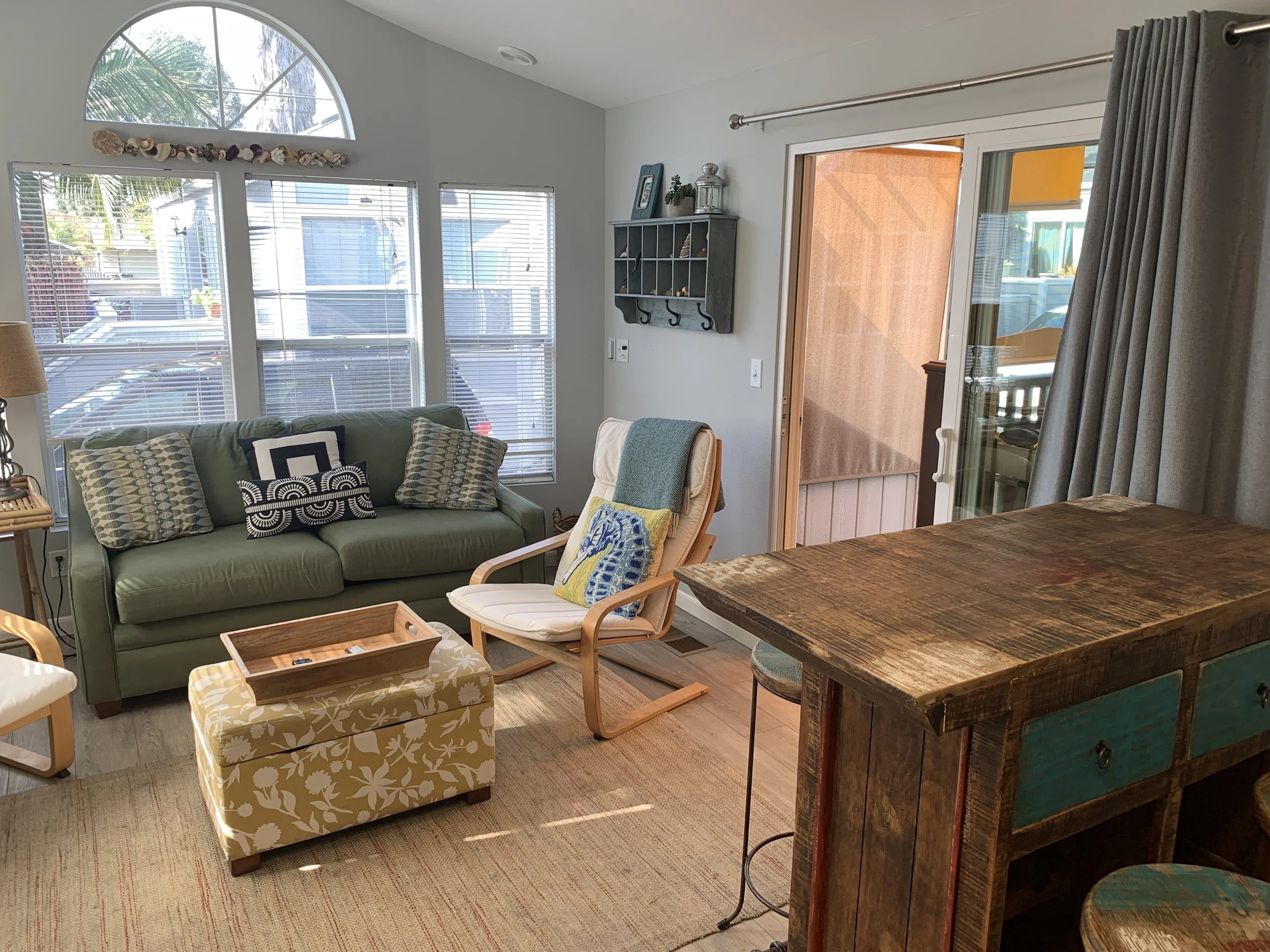 Small but updated cottage (460 sf), a short walk to Grandview Beach, located in the charming Sands community in Leucadia! Quaint and private single level manufactured home is west of Coast Highway and a short walk to the beach. Two bedrooms (one with a queen bed and the other a double) plus a comfortable queen Sealy Posturepedic sofa sleeper in the living room area. The kitchen and dining area are all newly remodeled and fully furnished. Private pergola deck with seating. Must check in on 1st of month and check out last day of month. Not only is this property a short walk to the popular Grandview Beach, but also to wonderful restaurants, shops and nightlife. Legoland, Sea World and the world famous San Diego Zoo are just a few of the options for things to enjoy during your stay. Spend your evenings enjoying the beach air on your private pergola deck with custom sunshades. One assigned parking spot in front of the property. The property boasts central air conditioning, WIFI and TVs in each bedroom and in main living area, all with cable. Hot water on demand, beach chairs, towels and some beach toys are available for your use. Pet must be approved in advance. No smoking. $139 per day. 30 day minimum rental period is required. Must rent from 1st of month to last day of month (or first day of next month). $200 cleaning fee applies to each stay.