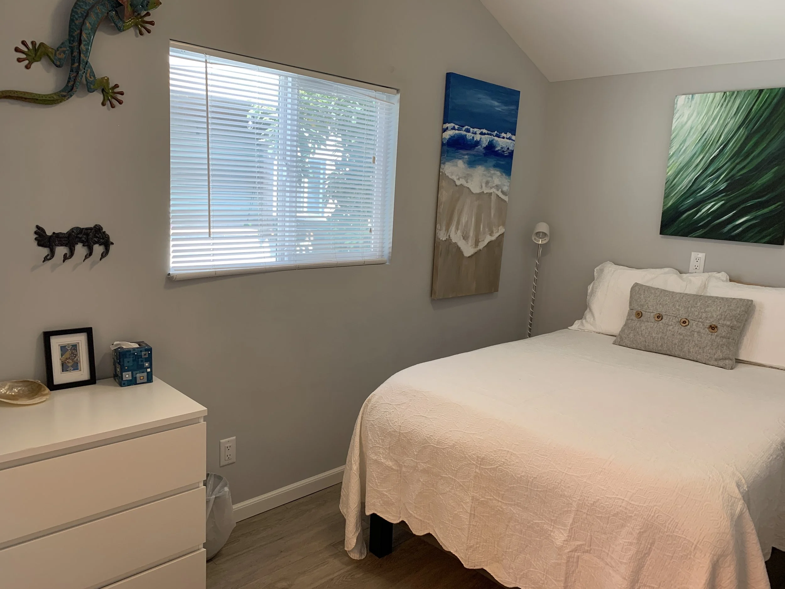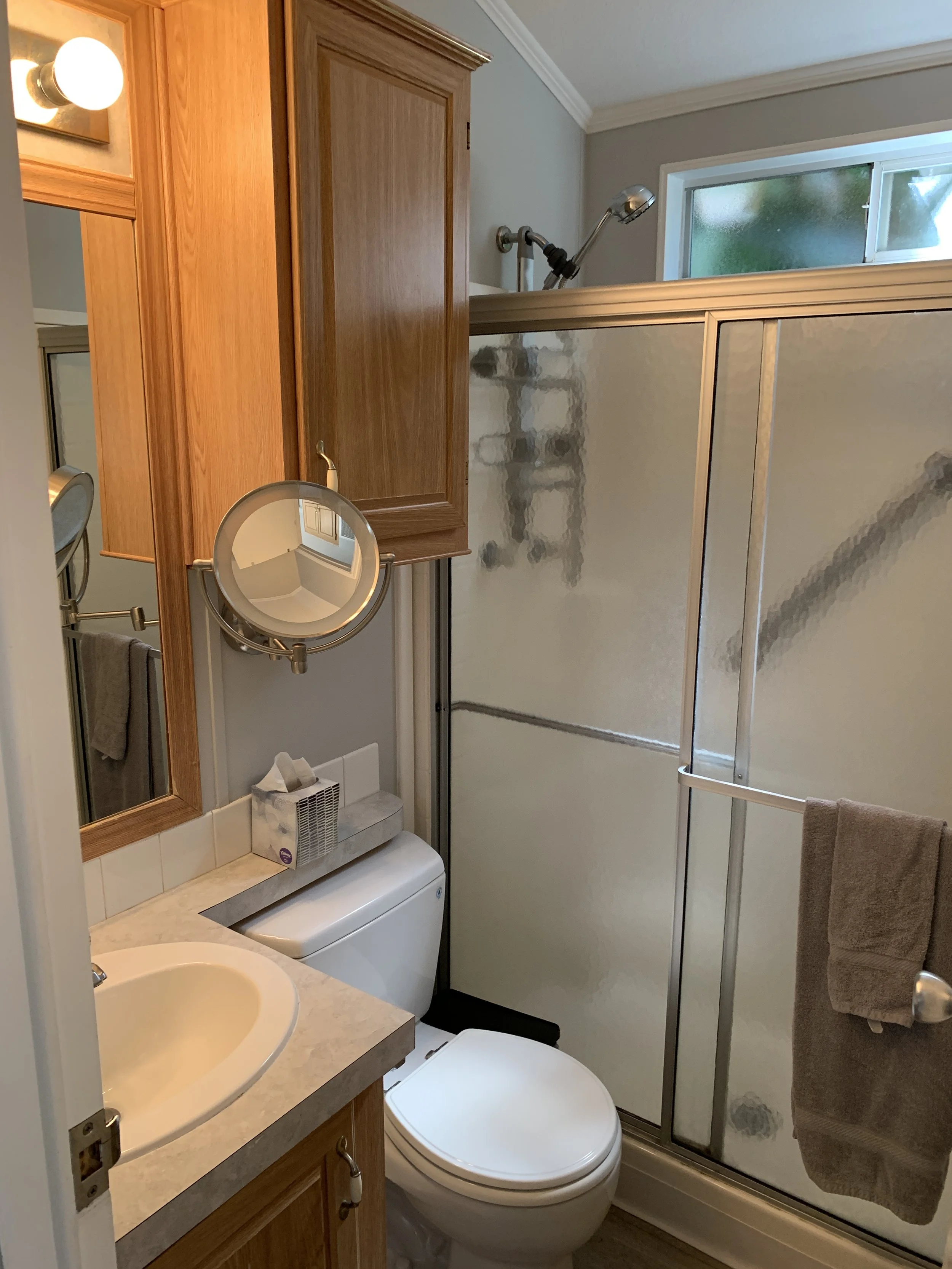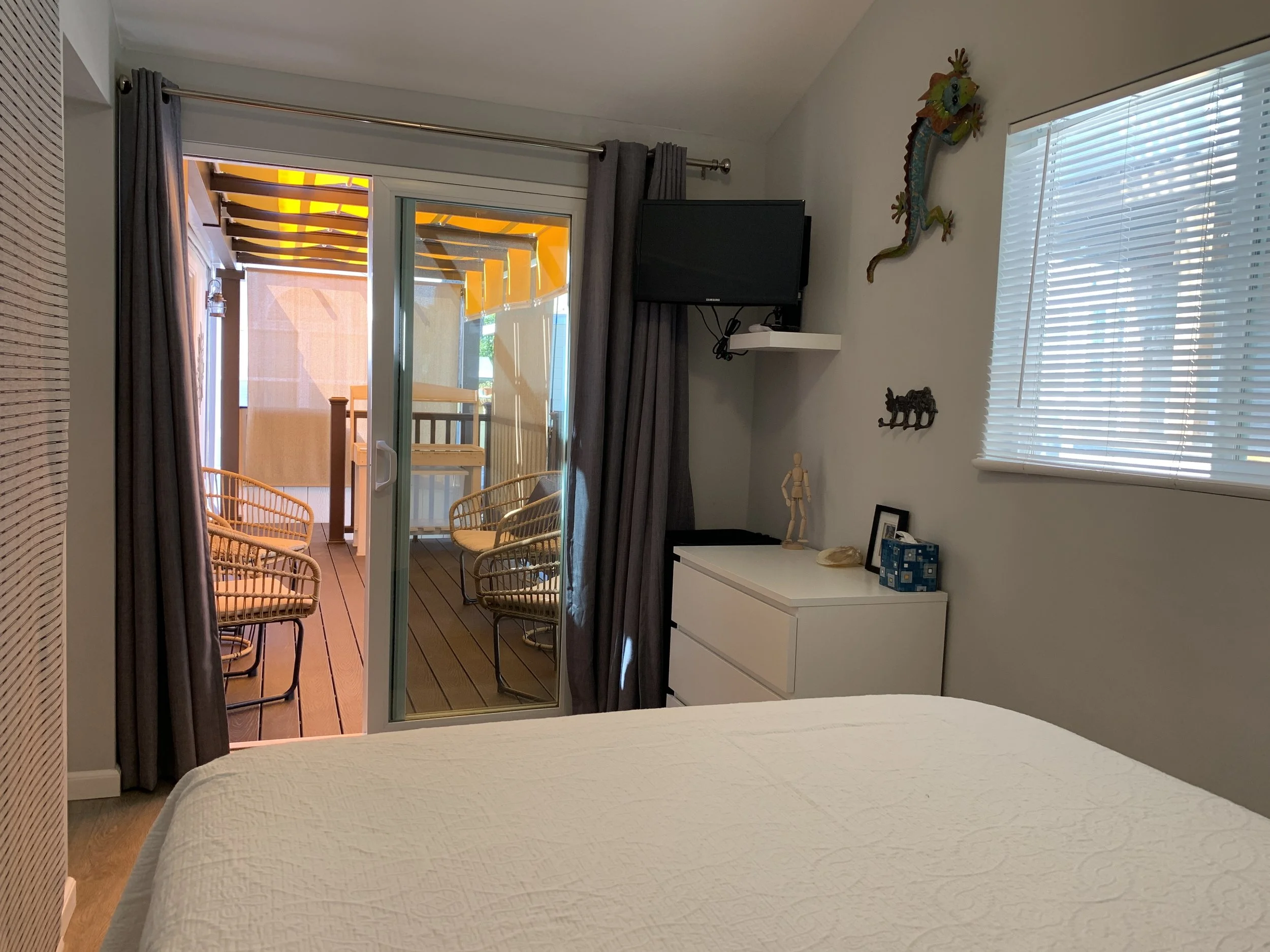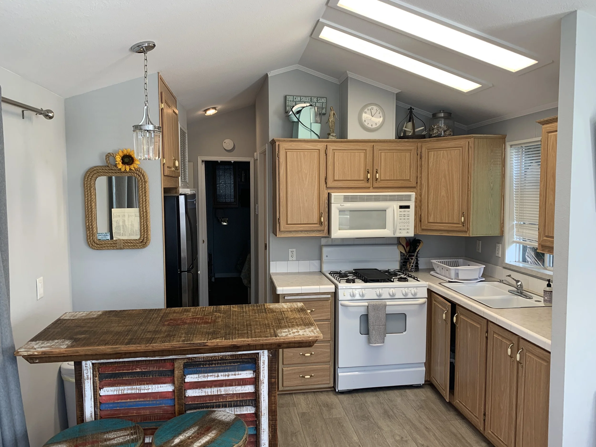 Small but updated cottage (460 sf), a short walk to Grandview Beach, located in the charming Sands community in Leucadia! Quaint and private single level manufactured home is west of Coast Highway and a short walk to the beach. Two bedrooms (one with a queen bed and the other a double) plus a comfortable queen Sealy Posturepedic sofa sleeper in the living room area. The kitchen and dining area are all newly remodeled and fully furnished. Private pergola deck with seating. Must check in on 1st of month and check out last day of month. Not only is this property a short walk to the popular Grandview Beach, but also to wonderful restaurants, shops and nightlife. Legoland, Sea World and the world famous San Diego Zoo are just a few of the options for things to enjoy during your stay. Spend your evenings enjoying the beach air on your private pergola deck with custom sunshades. One assigned parking spot in front of the property. The property boasts central air conditioning, WIFI and TVs in each bedroom and in main living area, all with cable. Hot water on demand, beach chairs, towels and some beach toys are available for your use. Pet must be approved in advance. No smoking. $139 per day. 30 day minimum rental period is required. Must rent from 1st of month to last day of month (or first day of next month). $200 cleaning fee applies to each stay.
